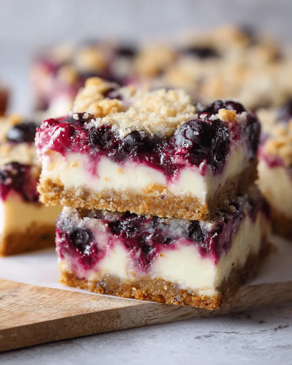 These blueberry cream cheese bars are a delightful treat perfect for any occasion. With their creamy filling and buttery oat crumble, they are sure to impress your guests. Store leftovers in the fridge for a quick snack, or enjoy them as a sweet end to your day! Dive into this deliciousness!