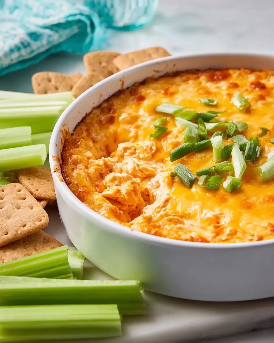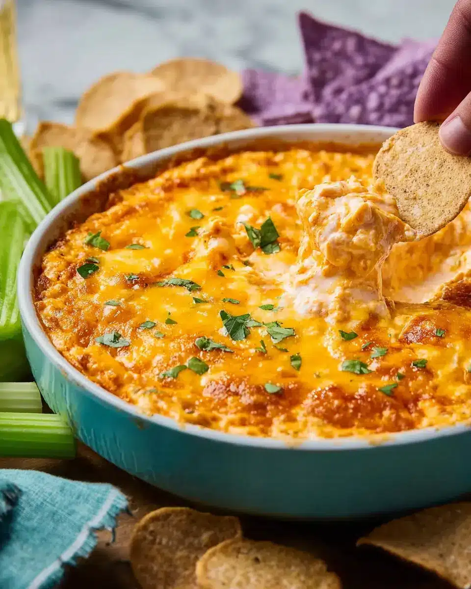Party Platter: Transform your Buffalo Chicken Dip into a crowd-pleaser by serving it alongside a variety of toppings — think sliced green onions, extra cheese, or even crispy turkey bacon bits for an unexpected twist.