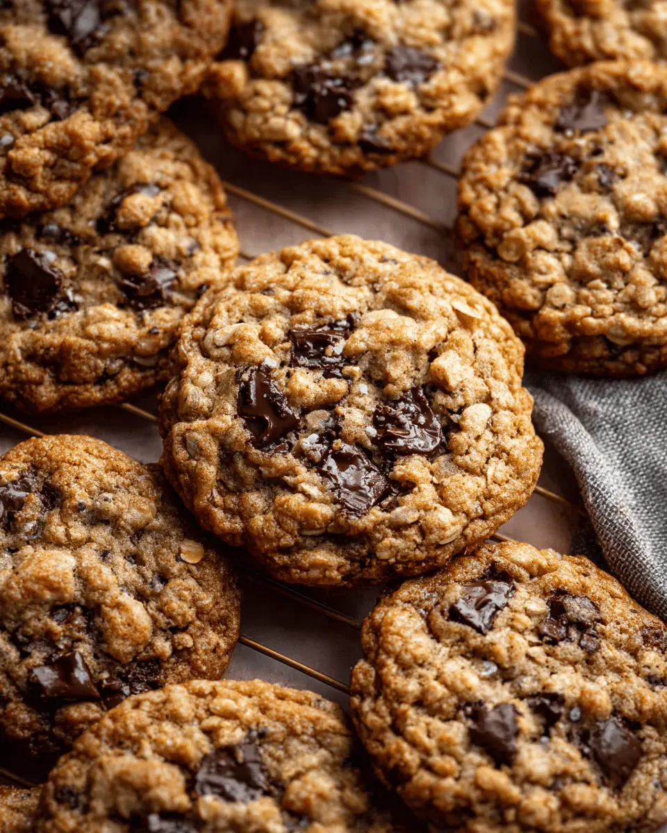 To ensure your chewy oatmeal chocolate chip cookies are soft and chewy, try using more brown sugar than granulated sugar, as brown sugar retains moisture. Also, don’t overbake them! Pull the cookies from the oven when they’re lightly browned at the edges but still soft in the center. Remember, they’ll continue cooking on the baking sheet while cooling.