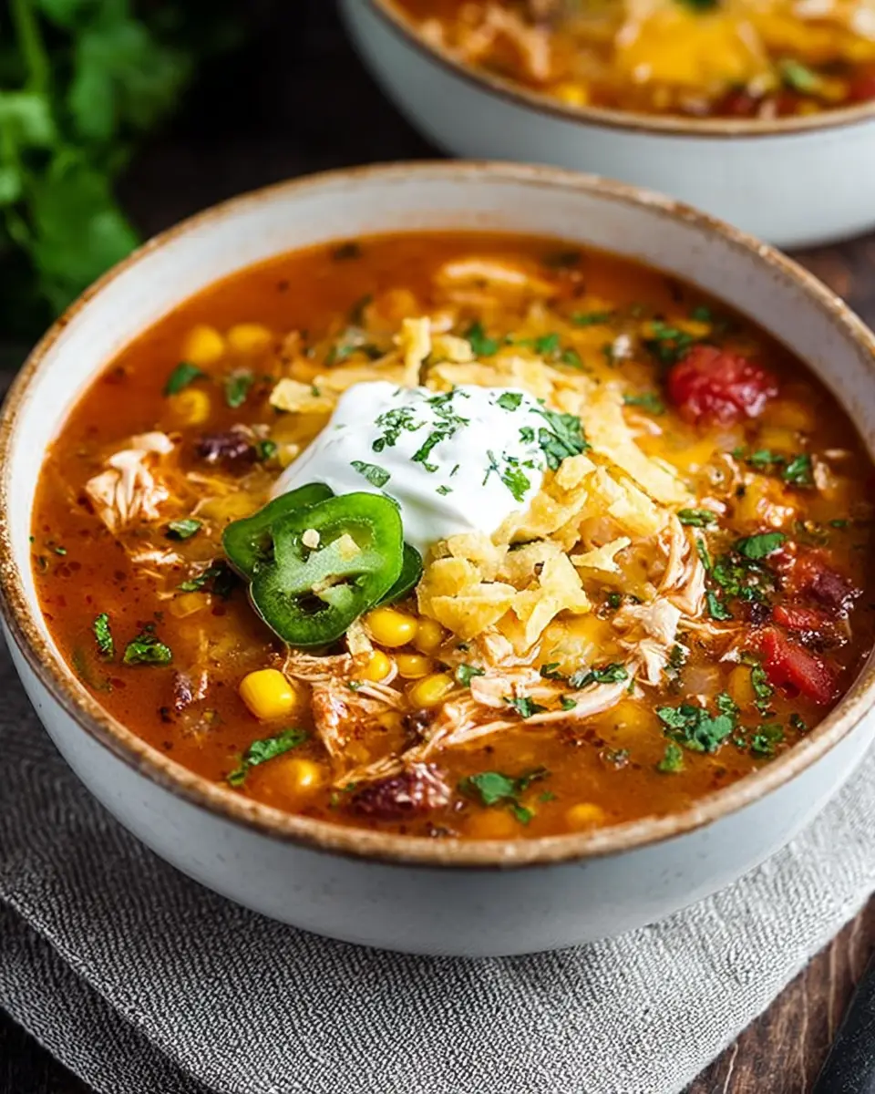 If you love a good kick, then the Spicy Chicken Enchilada Soup is your go-to! Increase the chipotle chili in adobo sauce for that extra heat, or toss in some jalapeños. For more depth, add a dash of cayenne pepper. This version pairs beautifully with a cool dollop of sour cream to balance the spice. Your taste buds will thank you for this fiery twist on a classic!