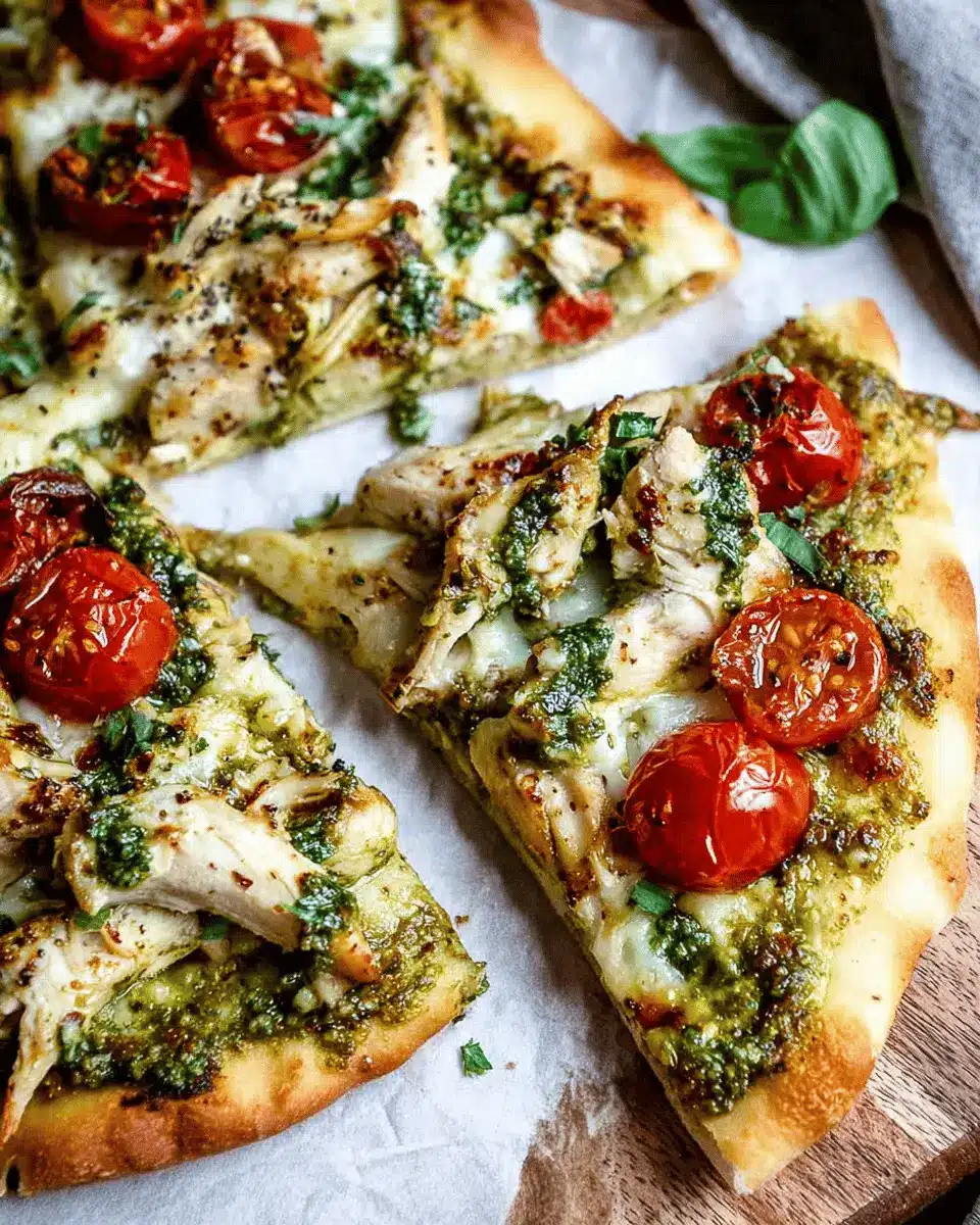 Seasonal toppings are a fun way to keep your Chicken Pesto Flatbread fresh and exciting! Spring is perfect for adding asparagus and peas, while summer calls for a burst of fresh herbs like basil and arugula. In the fall, consider roasted butternut squash or caramelized onions, and in winter, try topping with sautéed mushrooms or kale. These unique combos not only add flavor but also make your meal colorful and nutritious!
