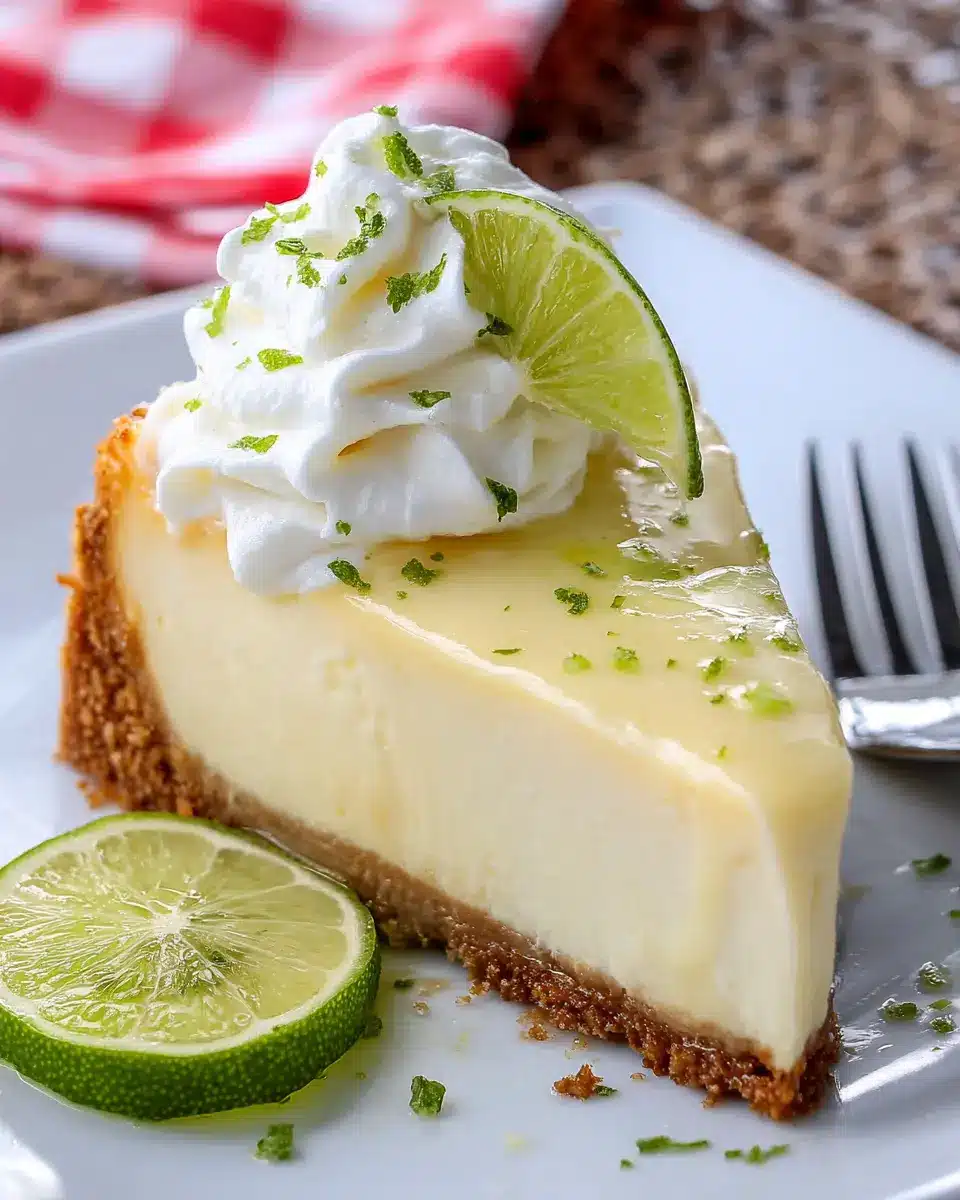 To complement your cheesecake, serve it alongside refreshing beverages. Consider a chilled glass of iced green tea or a sparkling water infused with fresh cucumber and mint. Both options provide a cool contrast to the zesty flavors of the cheesecake while keeping things light. If you want to take it up a notch, a tropical fruit smoothie can also beautifully tie in with the key lime theme, making your dessert experience even more delightful!