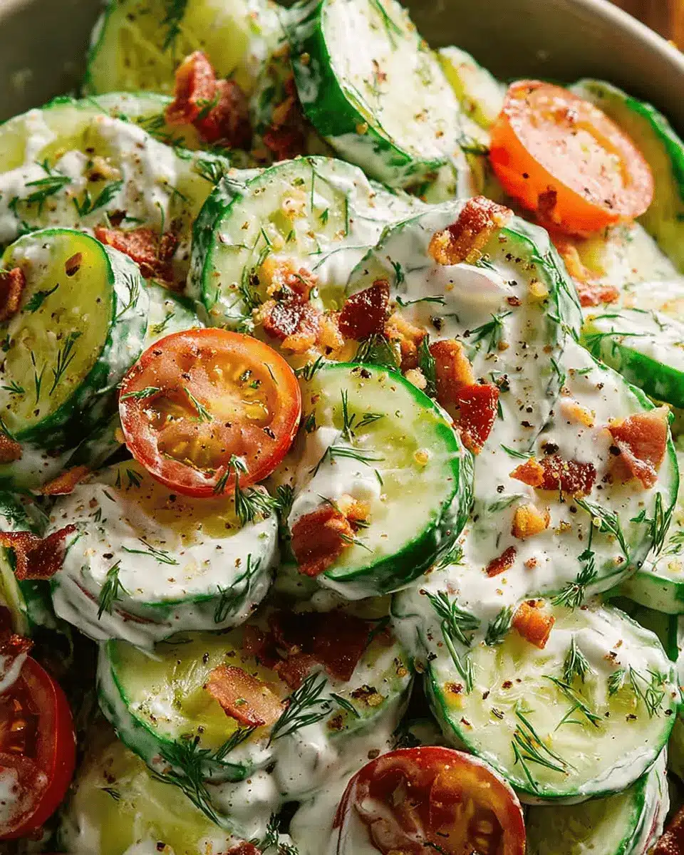 If you want a healthier alternative without sacrificing flavor, swap out the traditional bacon for turkey bacon. Its crispy texture and smoky taste will still give you that satisfying crunch while reducing the fat content. Simply prepare the turkey bacon as you would the regular bacon, crumble it, and toss it into your Cucumber Ranch Crack Salad. Trust us, this delightful variation will have you craving more! For some additional recipes, you might check out whichcooksbetter.com or eatwell101.com for fresh ideas!