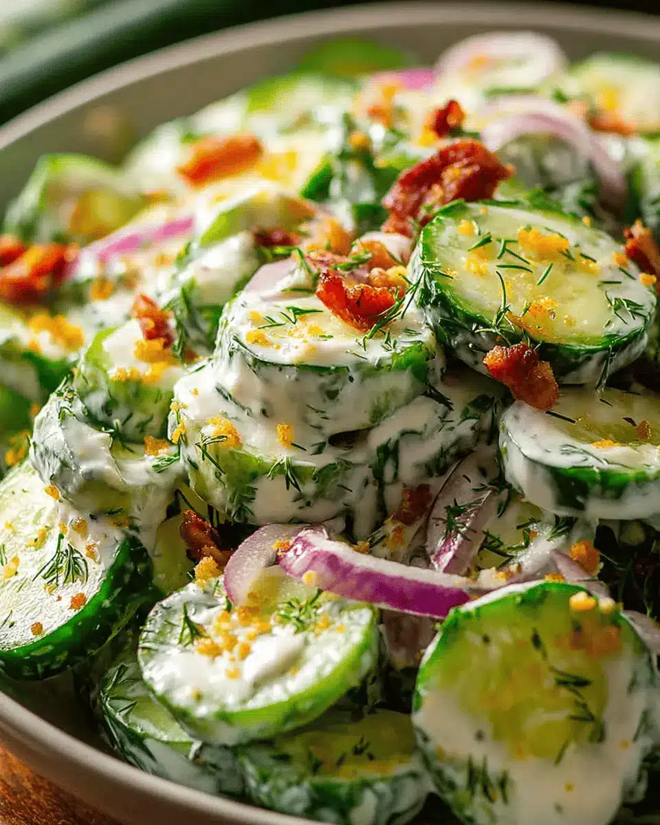The Cucumber Ranch Crack Salad has its roots in the classic American backyard potluck scene, where fresh ingredients combine with beloved flavors. This salad takes the crunch of fresh cucumbers and amplifies it with a creamy ranch dressing, crispy turkey bacon, and a hint of dill. Known for its crowd-pleasing appeal, this dish quickly became a favorite for summer gatherings, tailgates, and even weekday dinners. With its vibrant colors and irresistible taste, it's no wonder that this salad has earned the title of "crack"—one bite and you'll be going back for more.