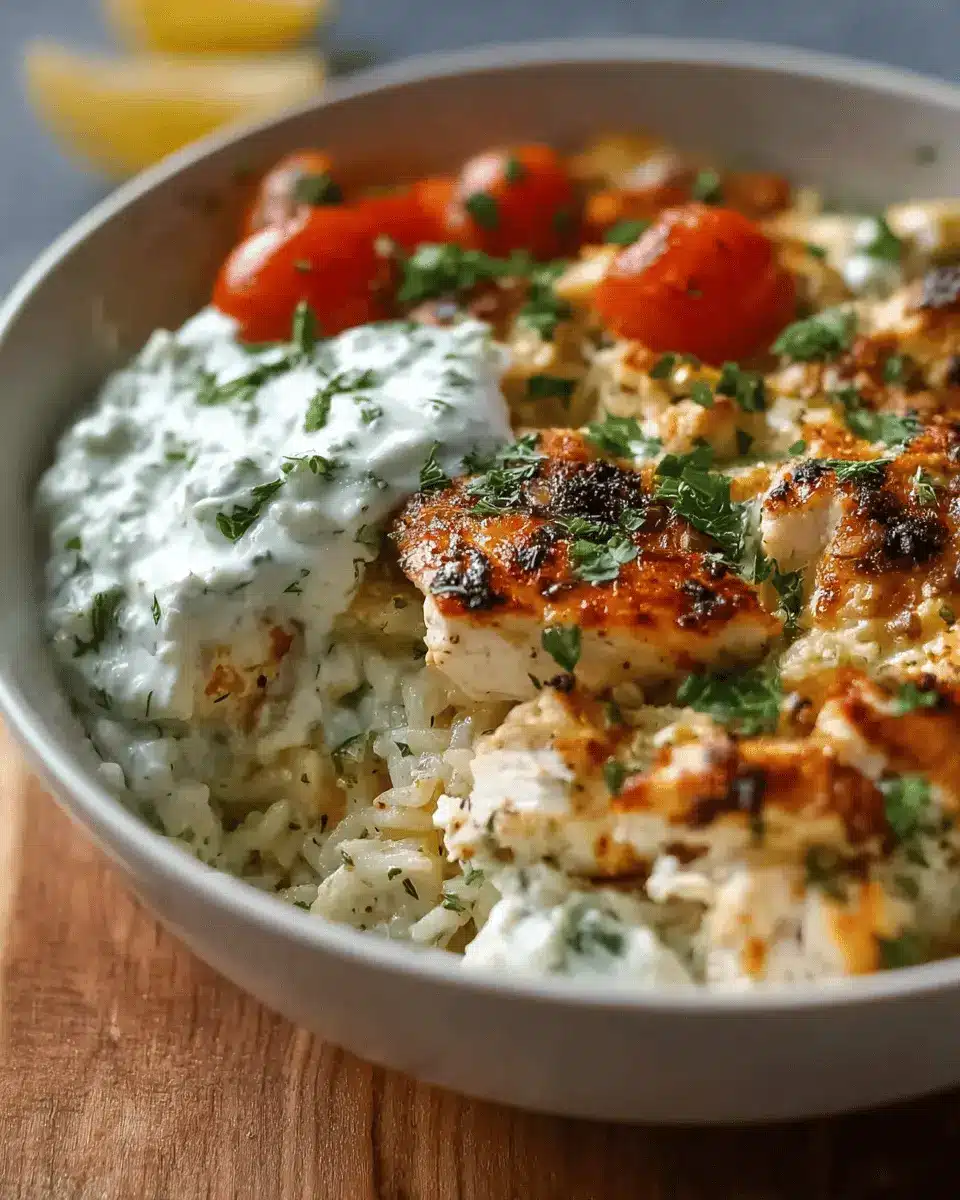 - Flavor Explosion: The combination of tzatziki sauce with spices like garlic and oregano transforms ordinary chicken and rice into a culinary delight that’s bursting with flavor.
