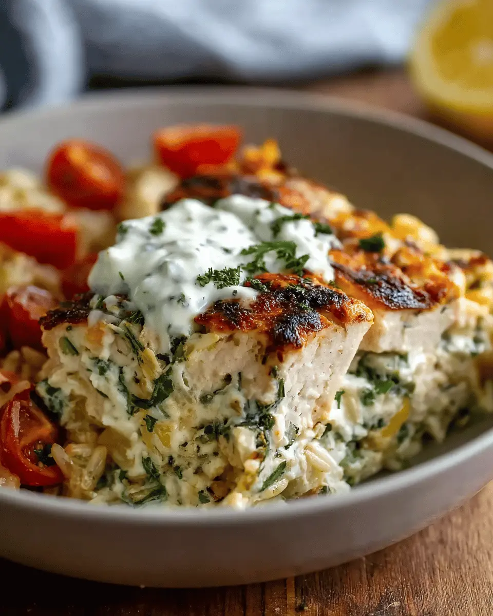 Now you’re ready to serve your gorgeous Dump-and-Bake Chicken Tzatziki Casserole! Each bite is sure to transport you straight to a lovely Mediterranean getaway. Enjoy your culinary masterpiece!