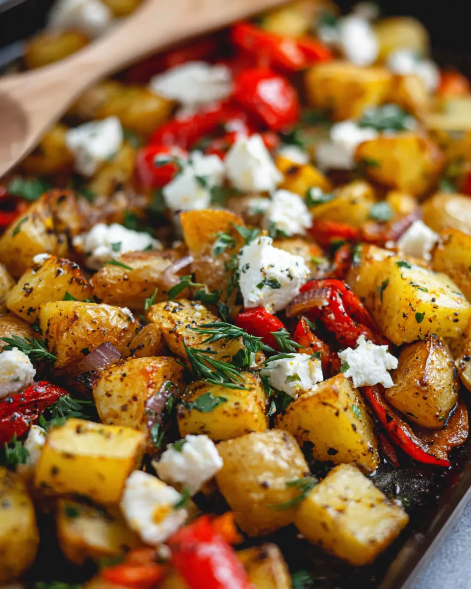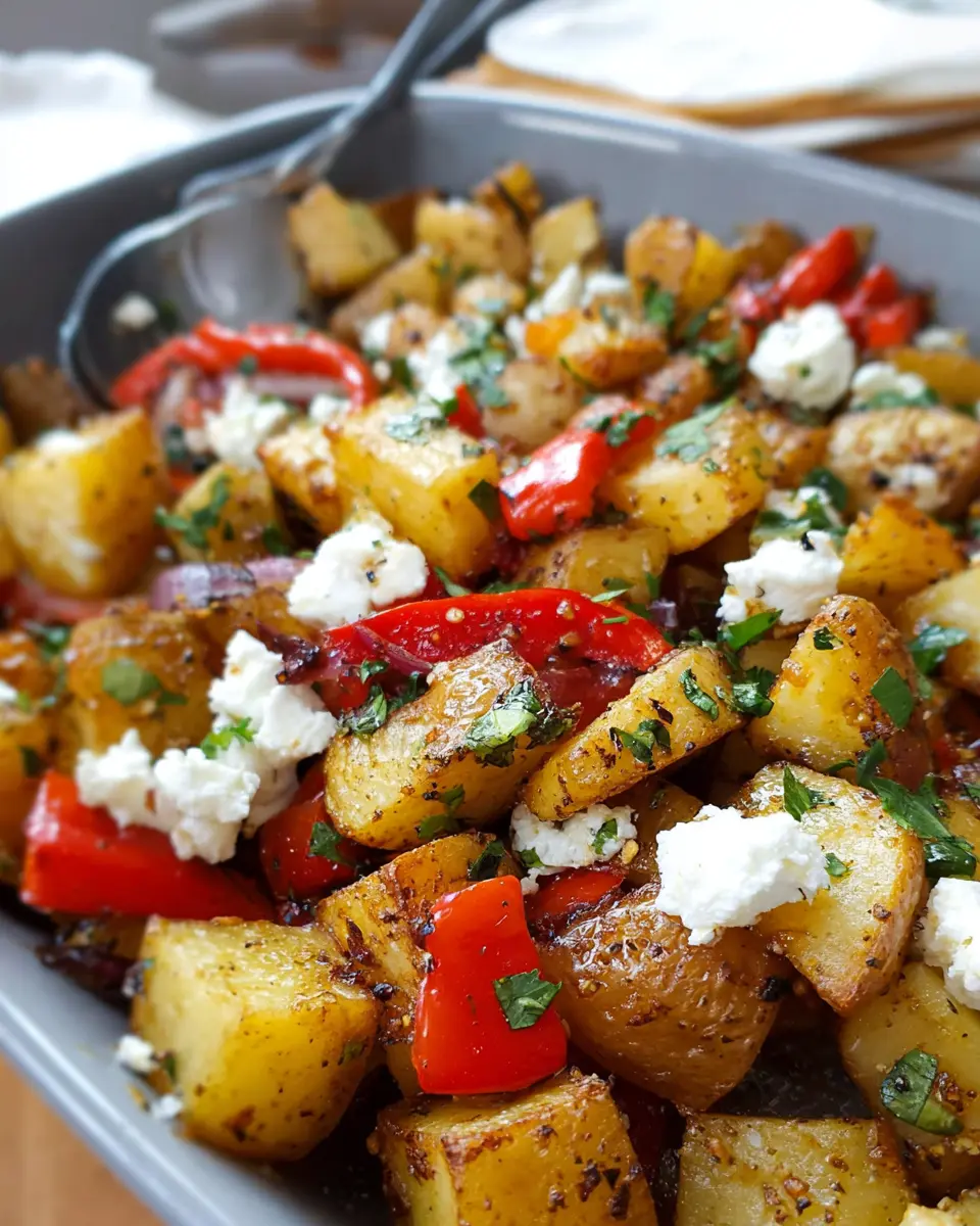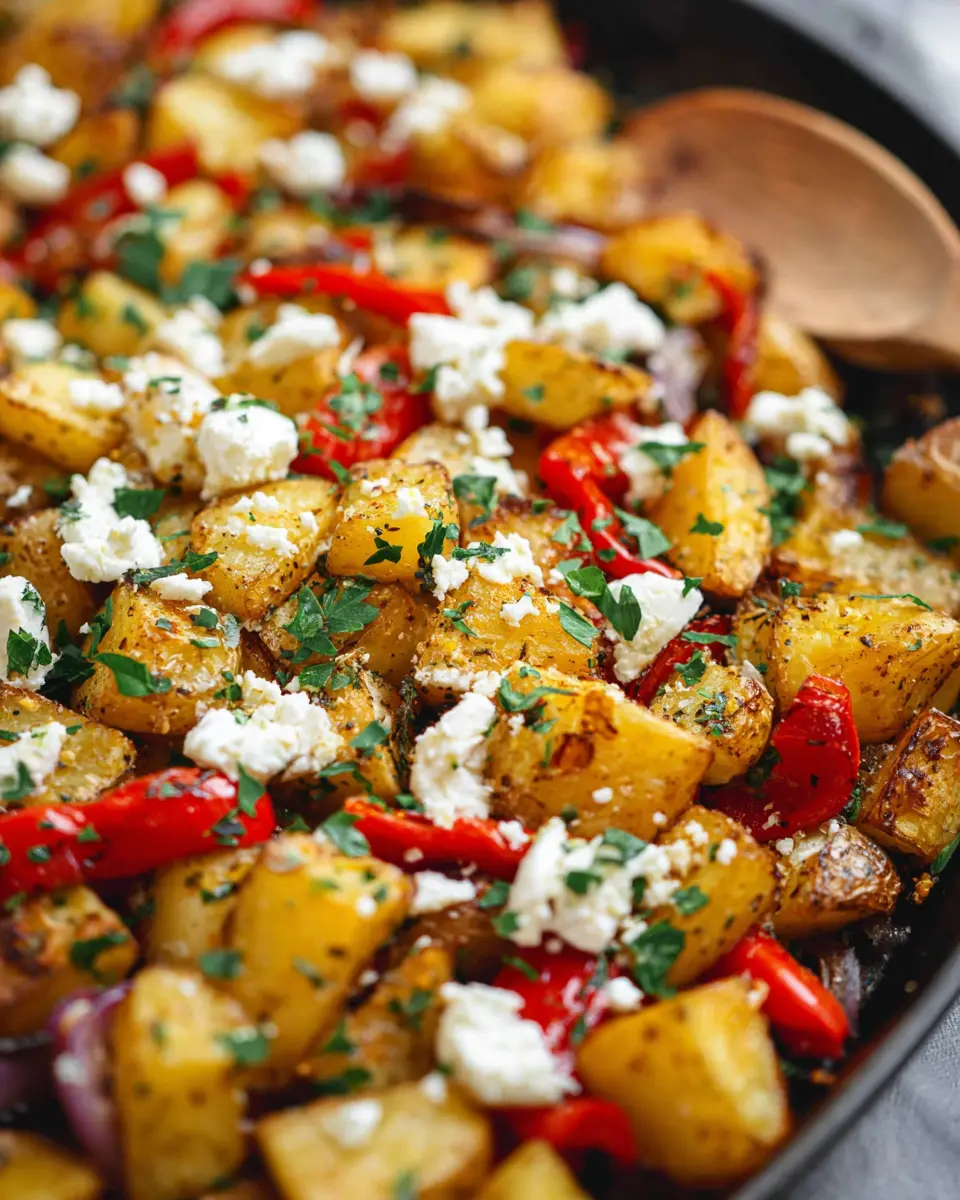 Introduction to Greek Roasted Potatoes with Peppers and Feta