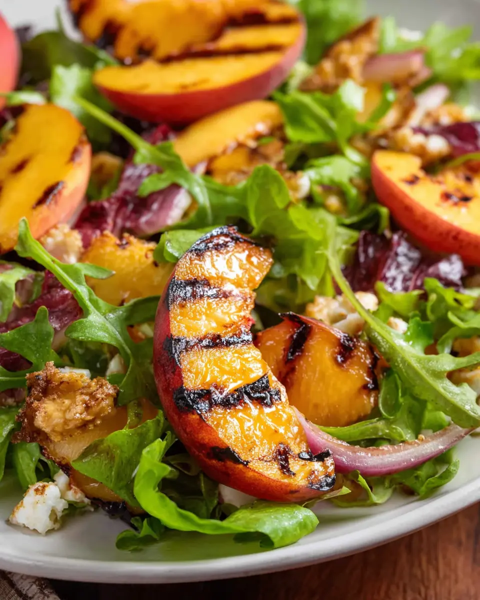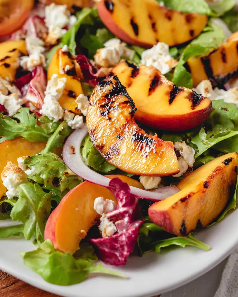For a stunning presentation, layer the ingredients in a clear glass bowl, showcasing the vibrant colors of grilled peaches, greens, and crumbled goat cheese. Drizzle the vinaigrette artfully on top just before serving to tantalize the taste buds. You could even garnish with a sprig of fresh basil or mint for that extra touch!