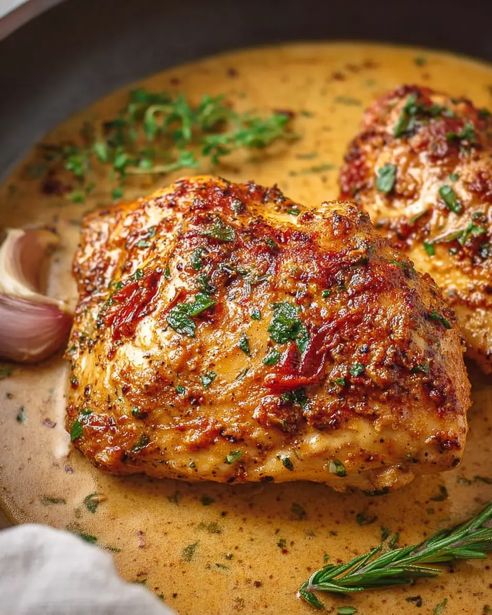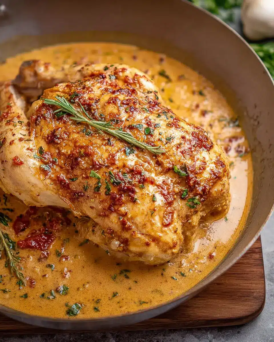 For a burst of fresh flavor, swap out the sun-dried tomatoes for pesto. Just stir in about ¼ cup of your favorite store-bought or homemade pesto to the creamy sauce. This gives the dish a fragrant herbaceous note that pairs beautifully with the chicken. Serve it over zucchini noodles or whole wheat pasta for a lightened-up version.