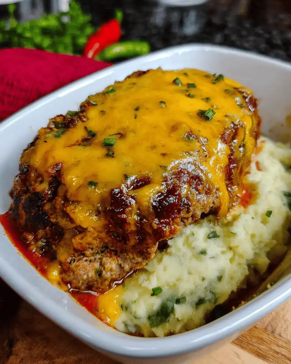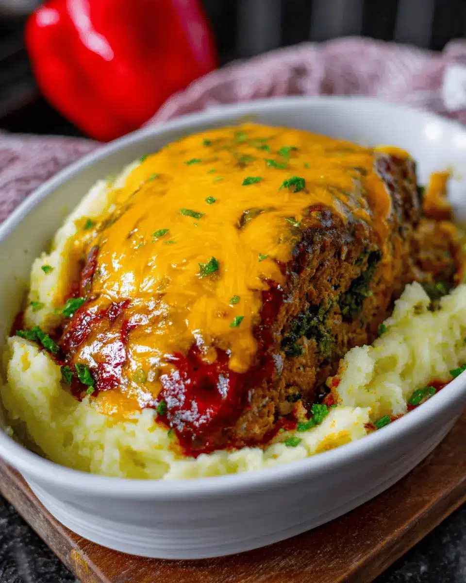 In summary, meatloaf with mashed potatoes and cheese creates a delightful comfort food experience that’s hard to beat! This dish is sure to please your taste buds and nourish your soul, serving as a delicious reminder of home-cooked meals. Give it a try—you won’t be disappointed!