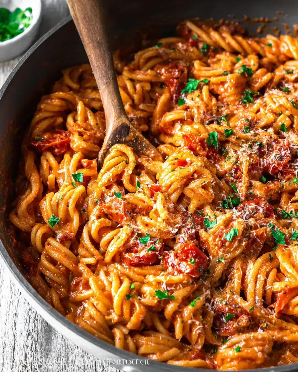 To elevate your One Pot Creamy Tomato Pasta, consider serving it alongside a crisp garden salad dressed with balsamic vinaigrette. The freshness of the greens perfectly balances the creaminess of the pasta. Additionally, warm, crusty garlic bread makes for a delightful side, perfect for scooping up any leftover sauce. For a touch of elegance, try a side of roasted vegetables—think zucchini, bell peppers, or asparagus—drizzled with olive oil and herbs.