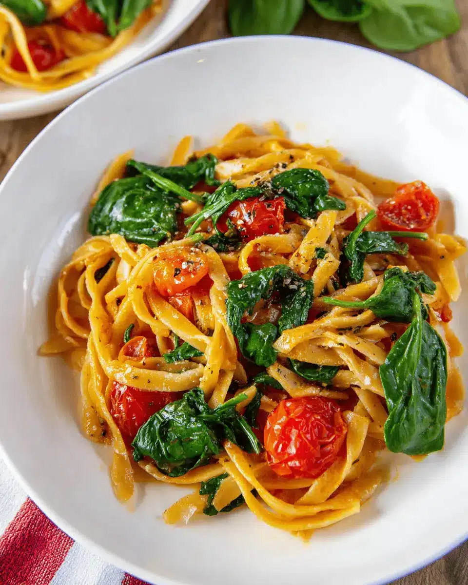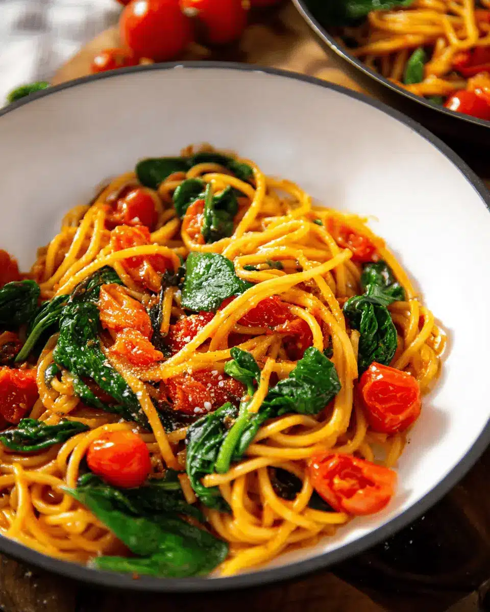 So why not simplify your evenings and delight in a comforting bowl of pasta, fresh spinach, and juicy tomatoes? After trying this recipe, you might find yourself coming back for seconds—both in flavor and convenience!