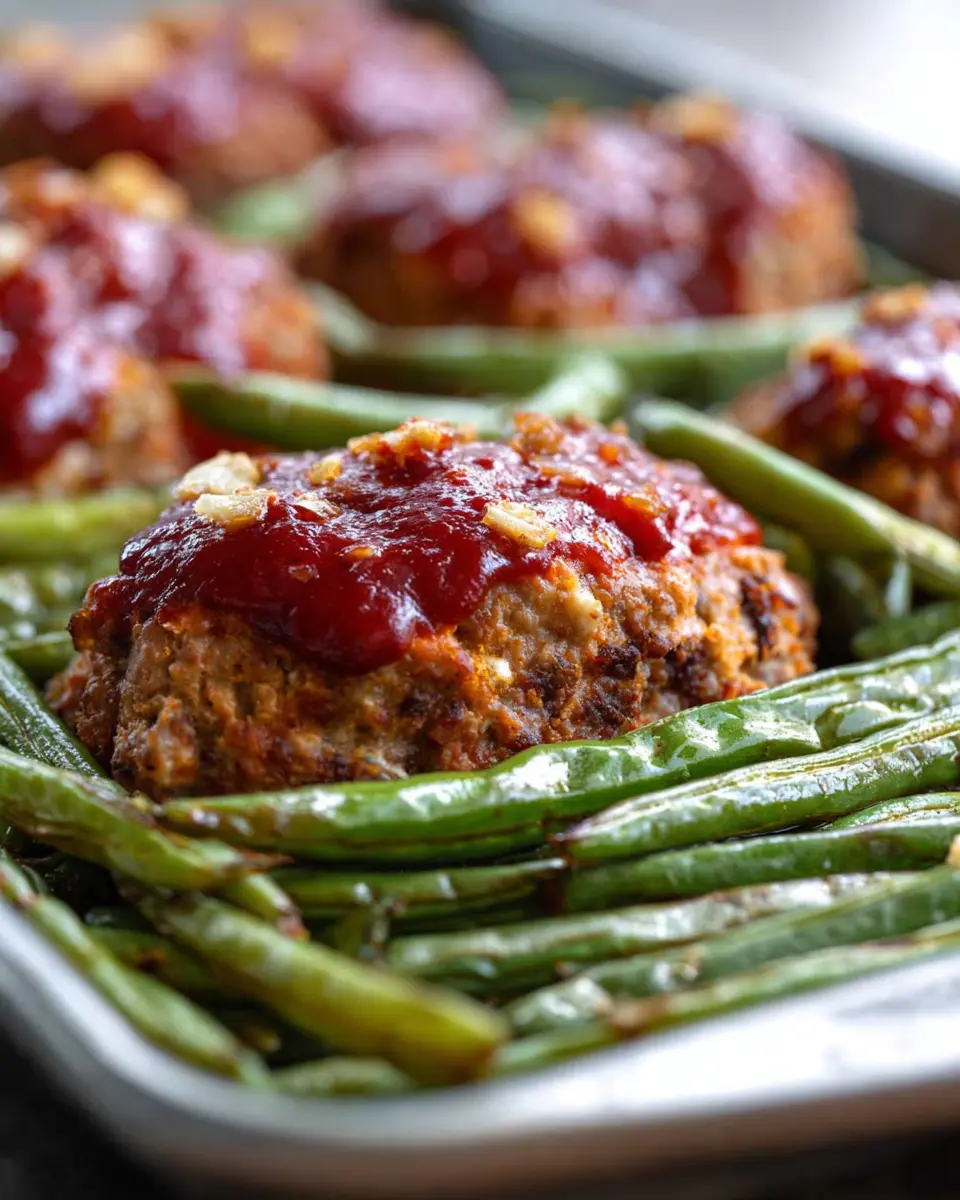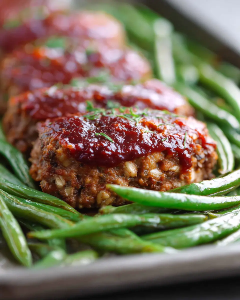 So, whether you’re commuting home or just finished a busy day, this recipe gives you the chance to savor a hearty meal that’s a cinch to prepare. Let’s dive into the details of this sheet pan meatloaf and green beans recipe!