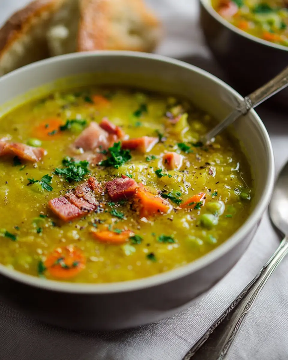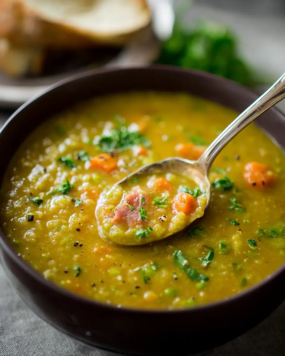 In summary, split pea soup embodies warmth and comfort, making it a perfect choice for chilly days. This hearty dish is not only easy to prepare but also packed with nutrition. Serve it warm, topped with fresh parsley, and enjoy a taste of home that everyone will love!