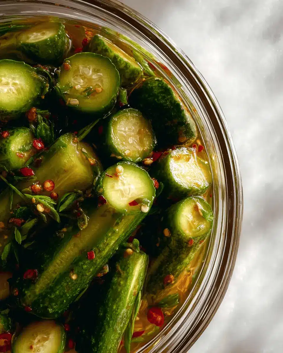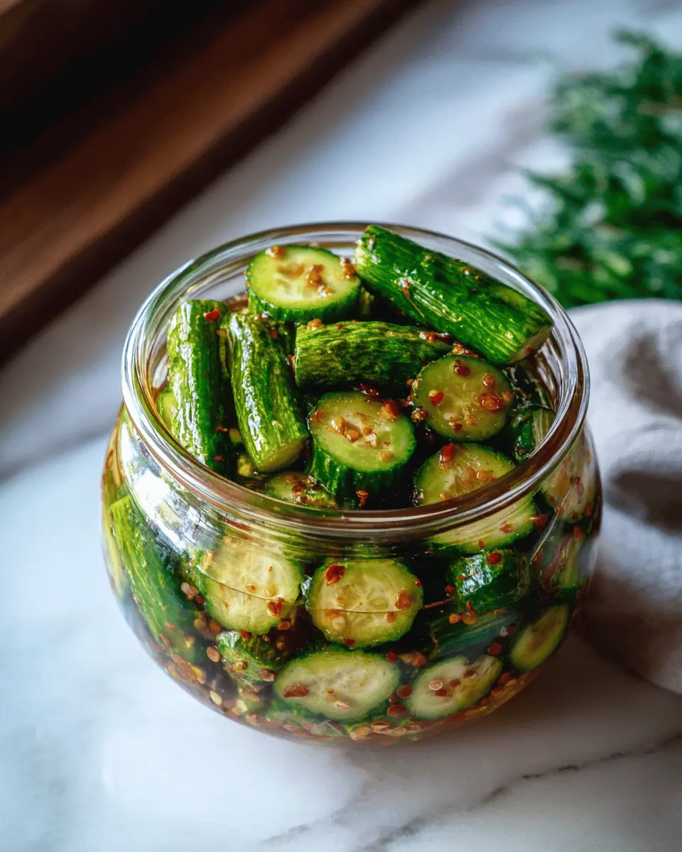 If you prefer a nutty twist, drizzle in a tablespoon of toasted sesame oil. The rich flavor complements the Sweet & Sour Asian Pickled Cucumbers beautifully and pairs perfectly with rice dishes. You might even want to sprinkle some toasted sesame seeds on top before serving for added texture!